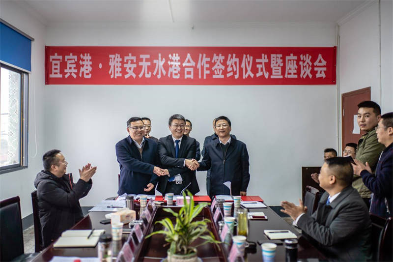 在簽約儀式上,雅安交建集團(tuán)、四川宜賓港集團(tuán)、中鐵聯(lián)集成都分公司共同簽署三方戰(zhàn)略合作協(xié)議,三方就“公、水、鐵”多式聯(lián)運(yùn)以及倉儲(chǔ)運(yùn)輸、甩掛運(yùn)輸、集裝箱運(yùn)輸、城市配送、零擔(dān)運(yùn)輸?shù)榷喾N業(yè)務(wù)開展深度合作。四川宜賓港集團(tuán)還分別和雅化實(shí)業(yè)集團(tuán)、寶興漢白玉石材協(xié)會(huì)、蘆山縣紡織協(xié)會(huì)等企業(yè)、協(xié)會(huì)進(jìn)行了戰(zhàn)略合作簽約。通過借助宜賓港·雅安無水港幫助本地企業(yè)打通外向通道,降低物流運(yùn)輸成本,改善物流運(yùn)輸體系。