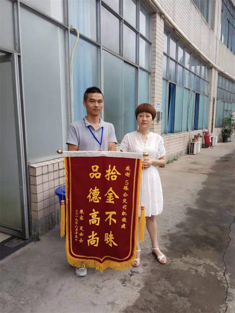 8月20日上午,市民夏女士冒著小雨來(lái)到公交總站,親手將一面寫(xiě)有“拾金不昧品德高尚”的錦旗送到5路公交車(chē)司機(jī)饒建手上。送上錦旗時(shí),夏女士口中還在不停的念叨著:“公交司機(jī)師傅很棒,真的要感謝你喲!