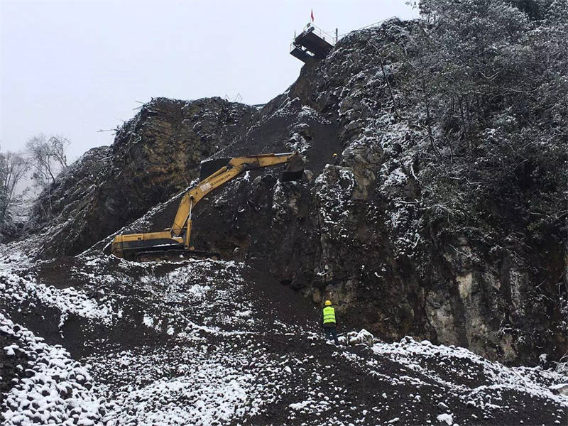 目前,廠區(qū)共8輛車在運(yùn)行施工,主要用施工材料運(yùn)輸,啟動(dòng)3臺(tái)挖機(jī)進(jìn)行礦山防護(hù)網(wǎng)安裝,初步完成安裝礦山防護(hù)網(wǎng)的前期準(zhǔn)備工作。2月15日,舉行復(fù)工儀式,天全縣相關(guān)部門對(duì)項(xiàng)目進(jìn)行復(fù)工資料驗(yàn)收檢查,已具備開(kāi)工條件。丹石公司員工正迎著風(fēng)雪在大山上加緊施工,確保魚(yú)泉獅子山礦山開(kāi)采項(xiàng)目能夠盡快完工。