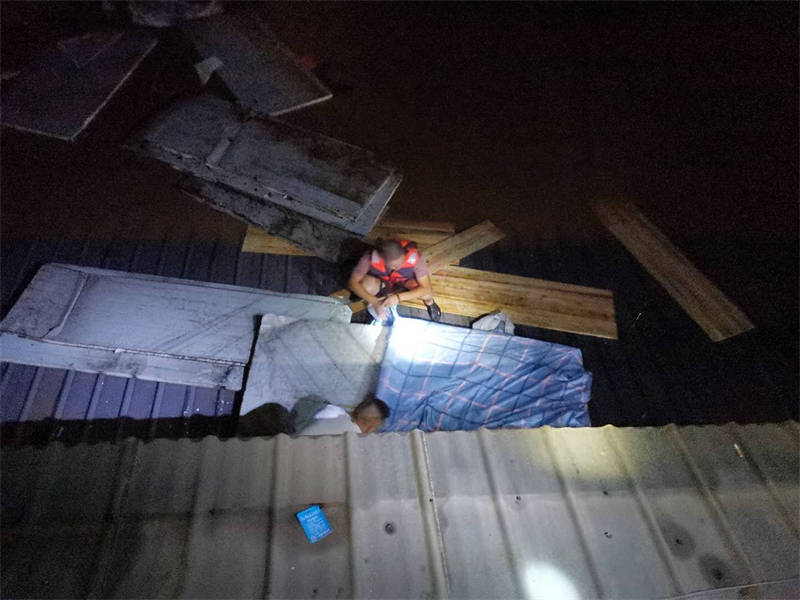 “感謝3名值班人員及時(shí)打電話通知我,否則后果不堪設(shè)想!焙喚纯f,回想起昨晚的情形,心里還是有些后怕。當(dāng)時(shí),他接到值班人員電話后,發(fā)現(xiàn)門衛(wèi)室外的洪水已經(jīng)逼近脖子,無法順利撤離,洪水漲勢(shì)又快,不一會(huì)兒,他只得爬上門衛(wèi)室頂端才能避免被水淹沒。后來,洪水沖來了一棵樹,簡敬奎借助這棵樹慢慢轉(zhuǎn)移到了附近一棵較高大的樹上繼續(xù)躲避,直至黃志和方華軍前來營救。