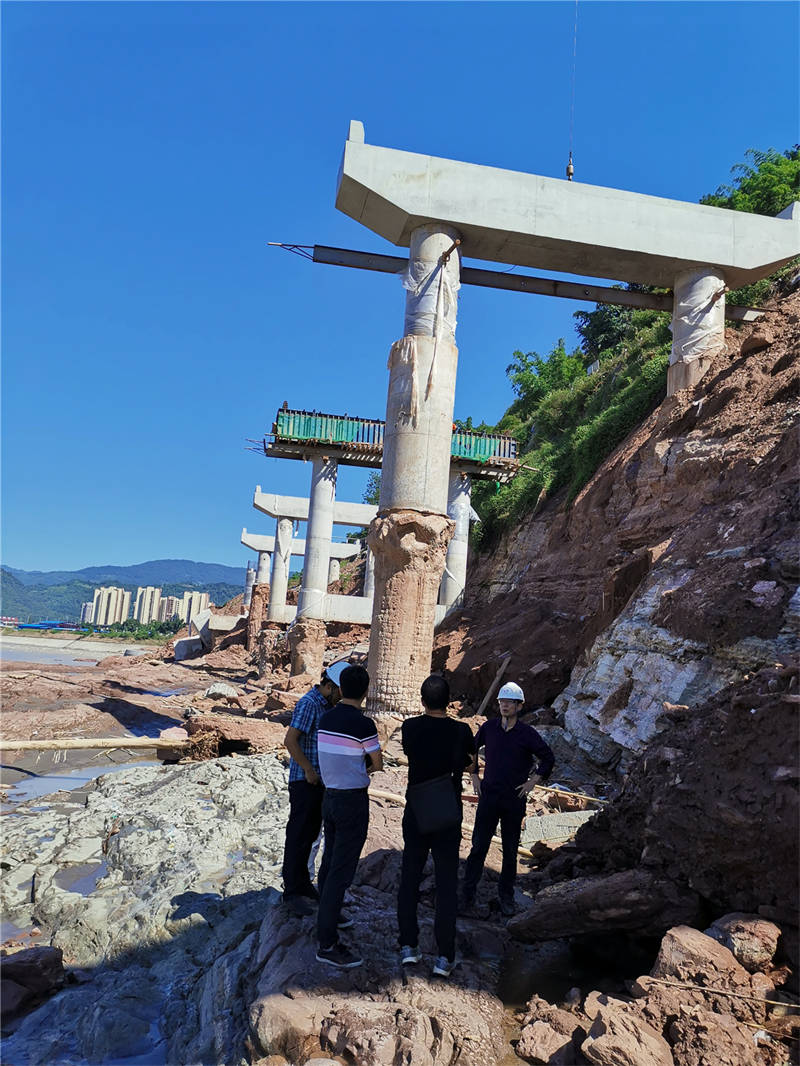 8月26日,項目公司邀請西南交通大學結構專家到省道104線草壩至姚橋段、草壩青衣江大橋(茶地坎碼頭渡改橋)、多營青衣江大橋(搭溝漩碼頭渡改橋)等涉水工程項目進行現(xiàn)場踏勘,檢查橋梁墩臺、防護工程結構等情況,并就相關項目安全狀況及結構物的加固提出了專業(yè)意見。