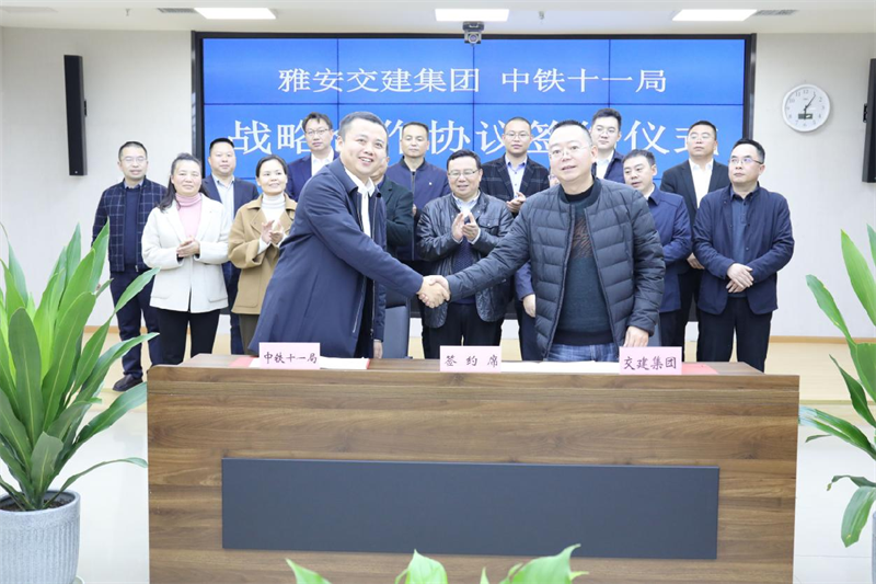 11月2日,雅安交建集團與中鐵十一局集團有限公司簽署戰(zhàn)略合作協(xié)議。集團黨委書記、董事長漆家華,中鐵十一局集團公司四川區(qū)域總經(jīng)理呂 涵參加并見證簽約儀式,集團黨委副書記、總經(jīng)理羅倫全與中鐵十一局集團四川區(qū)域副總經(jīng)理吳江偉代表雙方簽約。集團領(lǐng)導(dǎo)張萬清、張勝利、丁春、陸鷗、程學(xué)強,中鐵十一局四川區(qū)域副總經(jīng)理田景發(fā)以及四公司、五公司相關(guān)負(fù)責(zé)人見證簽約和座談交流。