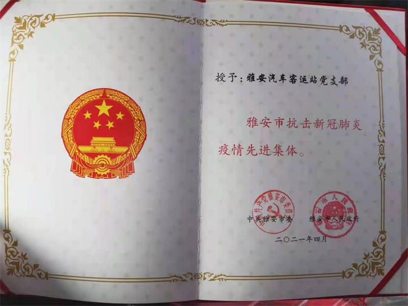 今年4月,蜀通公司雅安汽車客運(yùn)站黨支部被市委、市政府評(píng)為“雅安市抗擊新冠肺炎疫情先進(jìn)集體”,蜀通公司名山車站曹流滔同志被表彰為“雅安市抗擊新冠肺炎疫情先進(jìn)個(gè)人”。
