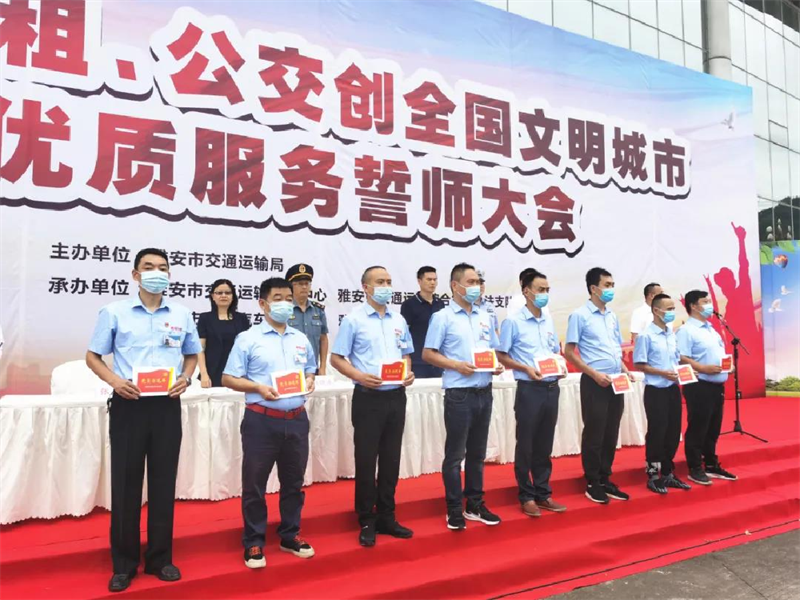 為進一步貫徹落實市委、市政府“爭創(chuàng)第七屆全國文明城市”決策部署和相關(guān)會議精神,以創(chuàng)建全國文明城市為契機,以建設(shè)“川藏鐵路第一城、綠色發(fā)展示范市”為目標,以實際行動深化創(chuàng)建全國文明城市活動,進一步激發(fā)城市公共交通行業(yè)創(chuàng)建熱情、凝聚創(chuàng)建活力。9月7日,雅安市召開出租、公交創(chuàng)全國文明城市暨優(yōu)質(zhì)服務(wù)誓師大會,動員全市廣大公交、出租車駕駛員積極參與創(chuàng)城活動,全面開展以“爭創(chuàng)文明公交、出租汽車黨員示范車”為載體的行業(yè)文明創(chuàng)建活動。市交通運輸局副局長龍興出席會議并講話。市創(chuàng)建辦、市交通服務(wù)中心、市交警支隊、市交通運輸綜合行政執(zhí)法支隊,交建集團公交公司、蜀通公司,雨城區(qū)、名山區(qū)交通運輸局及出租車行業(yè)協(xié)會有關(guān)負責(zé)人和來自市區(qū)各公交出租汽車行業(yè)的46名黨員駕駛員代表等參加會議。