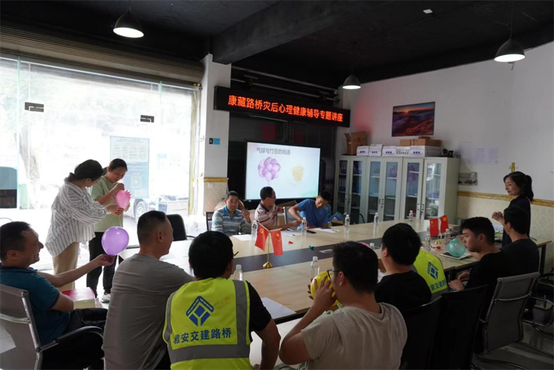 “6.1”蘆山地震發(fā)生后,路橋公司寶興項(xiàng)目部員工親身經(jīng)歷了全過程,第一時(shí)間組織人力、物力參加人員道路搶通保通和生產(chǎn)自救,突發(fā)地震災(zāi)害對(duì)職工造成不同程度的心理沖擊;顒(dòng)中,左老師與員工們歡聚一堂,以小游戲與員工互動(dòng)調(diào)整大家心理狀態(tài),圍繞員工心理健康常識(shí)、常見心理困擾及應(yīng)對(duì)策略和如何緩解工作壓力、控制個(gè)人情緒、提高心理健康水平等內(nèi)容,評(píng)估員工心理健康狀況,剖析員工情緒現(xiàn)狀及負(fù)面情緒產(chǎn)生的原因,幫助梳理解決方案。