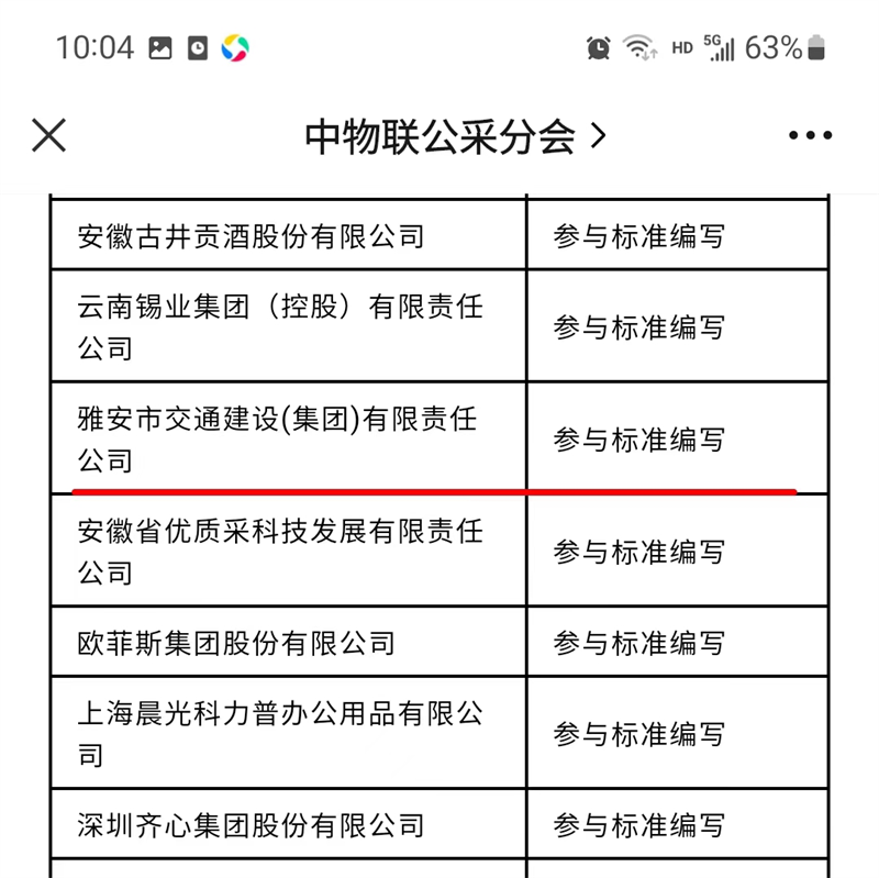 4月20日,由中國物流與采購聯(lián)合會批準(zhǔn)立項,中國物流與采購聯(lián)合會公共采購分會牽頭編制,中國物流與采購聯(lián)合會團(tuán)體標(biāo)準(zhǔn)化技術(shù)委員會歸口的團(tuán)體標(biāo)準(zhǔn)《國有企業(yè)采購操作規(guī)范》正式發(fā)布,雅安市交通(建設(shè))集團(tuán)有限公司是本次團(tuán)體標(biāo)準(zhǔn)起草組成員單位中全國唯一一家地級市屬國有企業(yè)平臺公司。