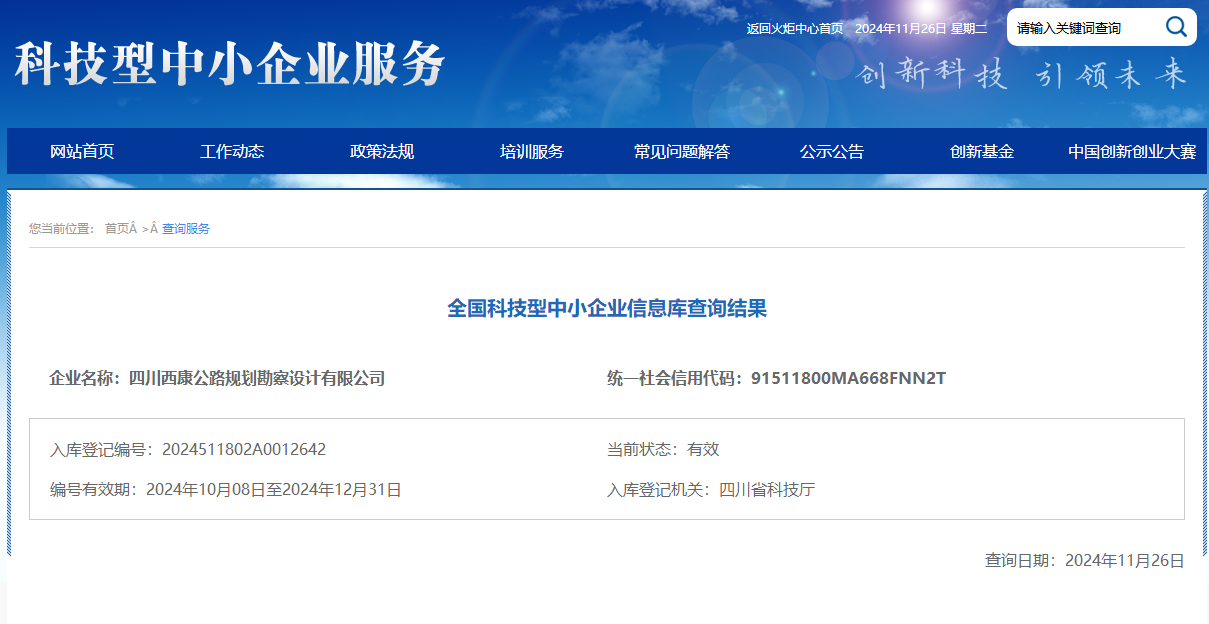 近日,四川省科學(xué)技術(shù)廳公布了本年度第五批入庫科技型中小企業(yè)名單,雅安交建集團(tuán)四川西康公路規(guī)劃勘察設(shè)計(jì)有限公司榮獲“國家級(jí)科技型中小企業(yè)”稱號(hào),標(biāo)志著公司在科技創(chuàng)新道路上邁向了新的高度。