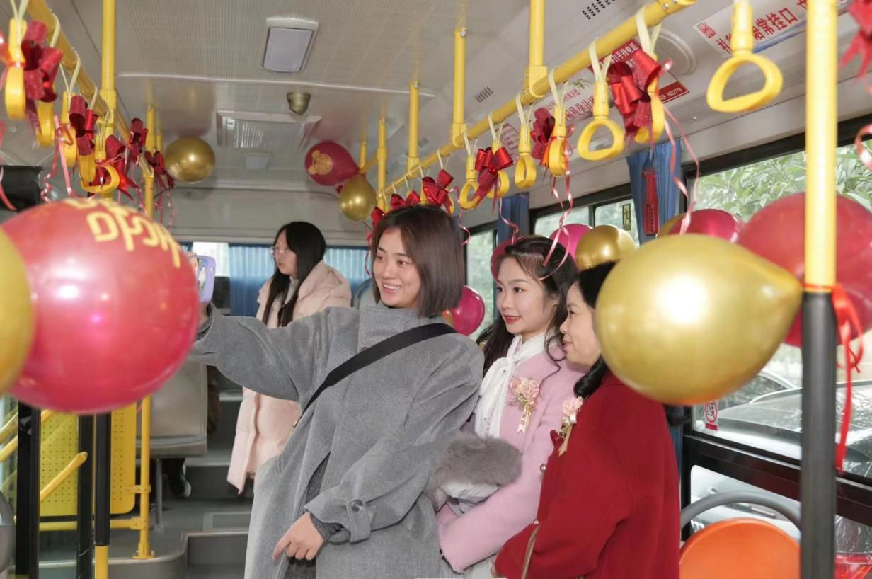 使用這輛“公交婚車”的新人表示:“與傳統(tǒng)迎親的車隊(duì)相比,公交婚車不僅低碳環(huán)保,好看熱鬧,而且租金也相對較低,性價比直接拉滿,親朋好友都聚集在寬敞的公交車?yán),一路拍照、唱歌,特別有儀式感”。