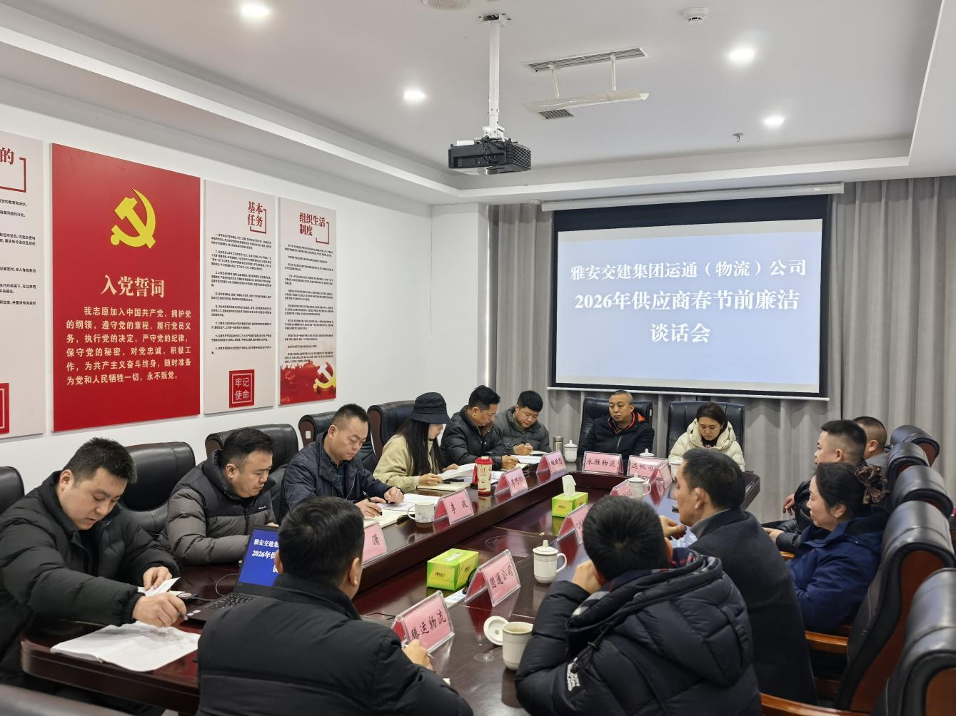 2月5日,雅安交建集團(tuán)運(yùn)通(物流)公司組織開展節(jié)前廉潔專題系列活動,公司班子成員、全體員工及合作商代表分時段參會;顒泳劢刮锪髻Q(mào)易與合作特點(diǎn),通過“學(xué)部署、明制度、剖案例、促共建”相結(jié)合的方式,推動廉潔紀(jì)律內(nèi)化于心、外化于行,切實(shí)筑牢春節(jié)前廉潔防線。