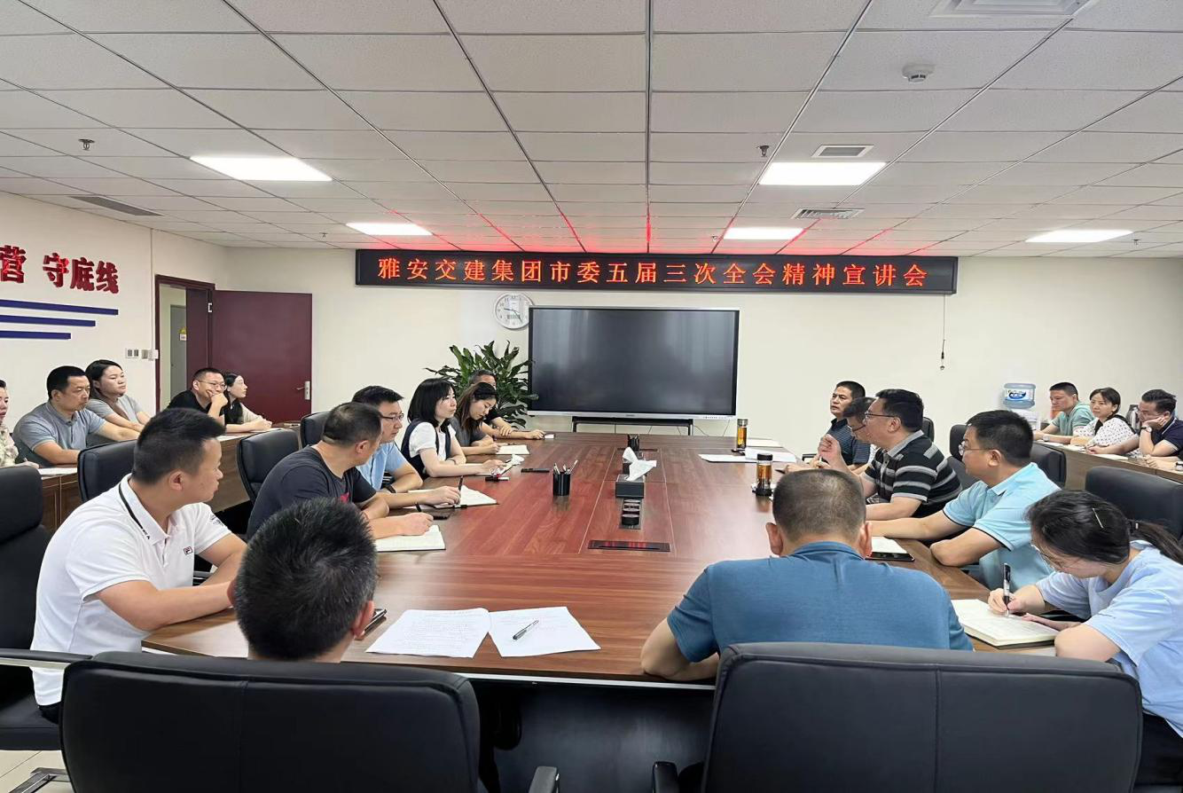 7月13日,雅安交建集團黨委召開專題宣講會,傳達學習市委五屆三次全會精神,雅安交建集團黨委書記、董事長漆家華作主題宣講,集團公司領導班子成員、下屬各黨組織書記、機關全體黨員參加。