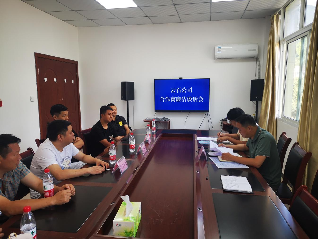 為營造風清氣正、崇尚廉潔的合作氛圍,7月1日上午,云石公司總經(jīng)理趙強主持召開合作商廉潔座談會。公司班子成員、業(yè)務部門負責人、紀檢聯(lián)絡員以及新采購的3家合作商代表參加座談。