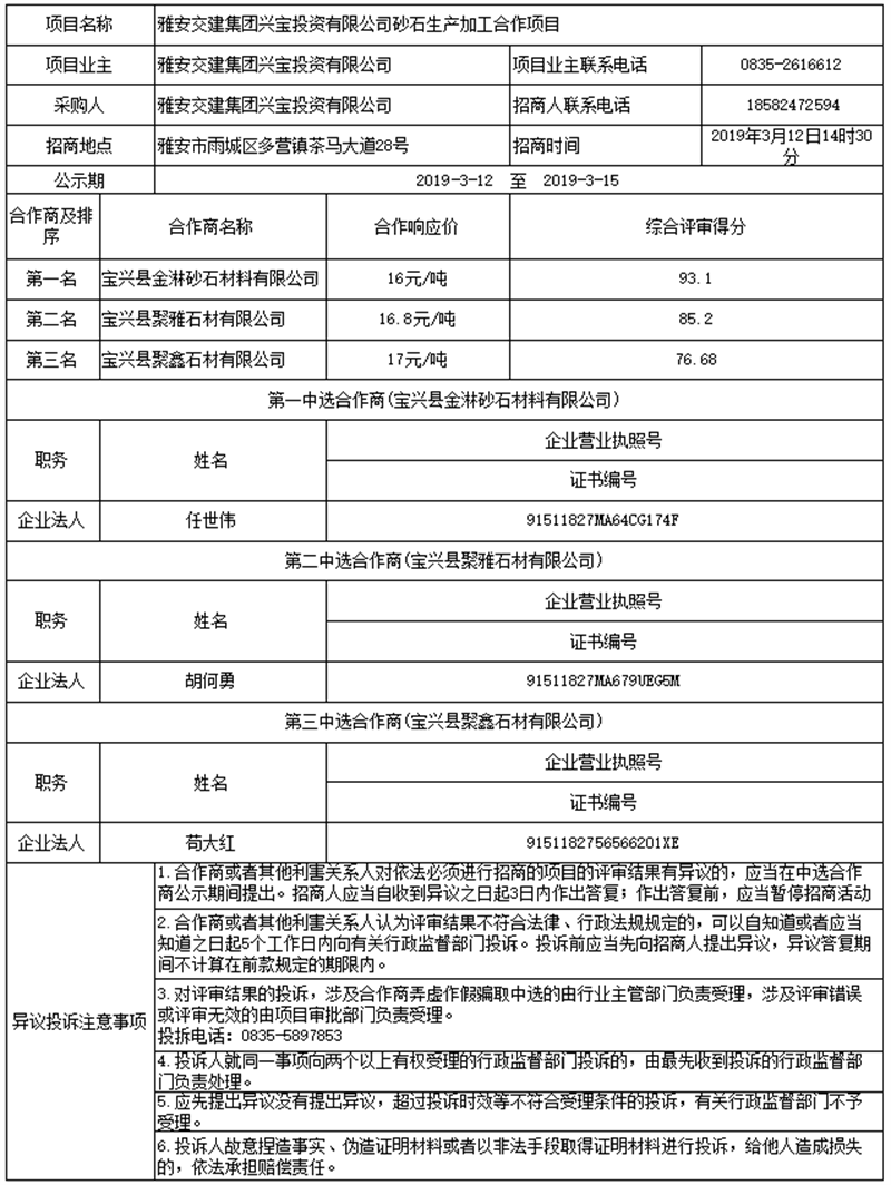 雅安交建集團興寶投資有限公司砂石生產加工合作項目公示