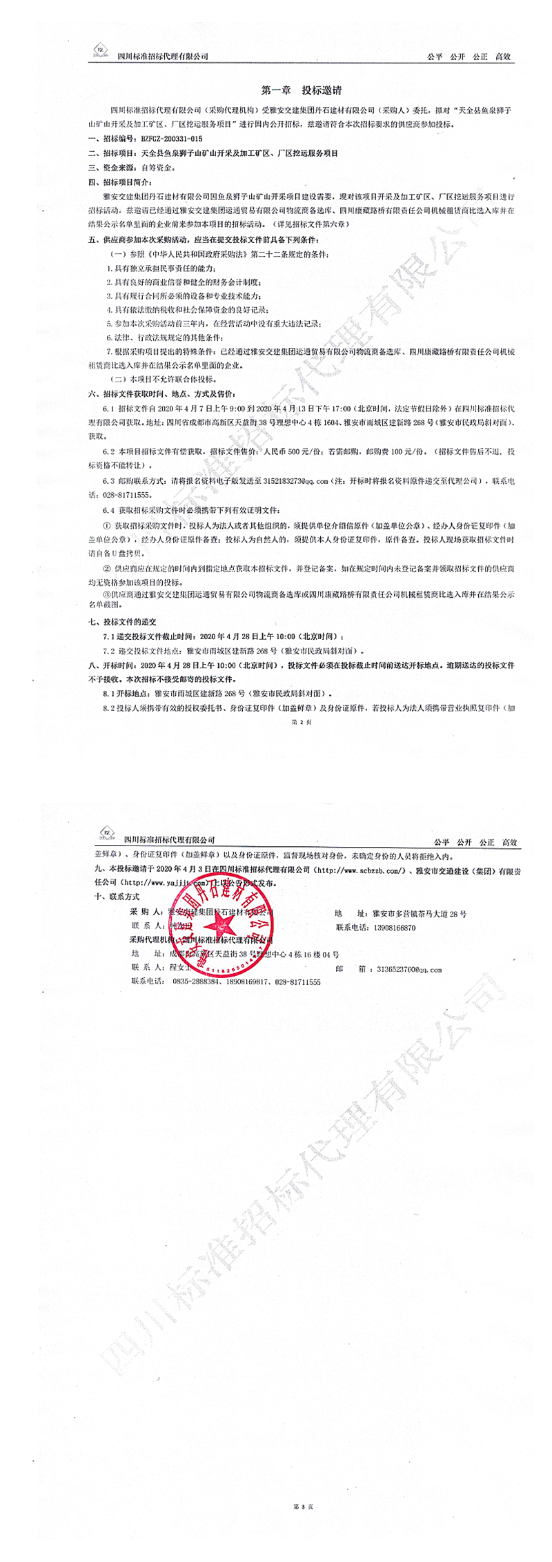 雅安交建集團(tuán)丹石建材有限公司天全縣魚泉獅子山礦山開采及加工礦區(qū)、廠區(qū)挖運(yùn)服務(wù)項目招標(biāo)公告
