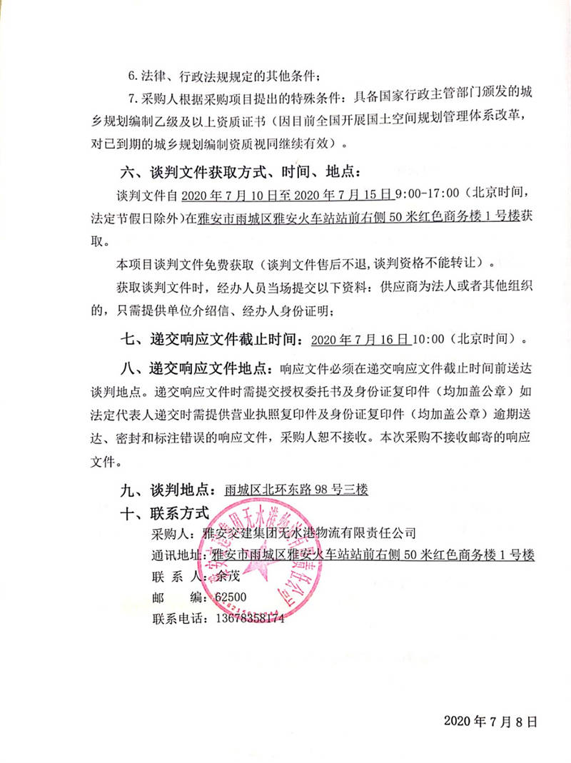 雅安交建集團無水港物流有限責(zé)任公司雅安市鳳鳴綜合物流園項目概念規(guī)劃咨詢服務(wù)競爭性談判公告