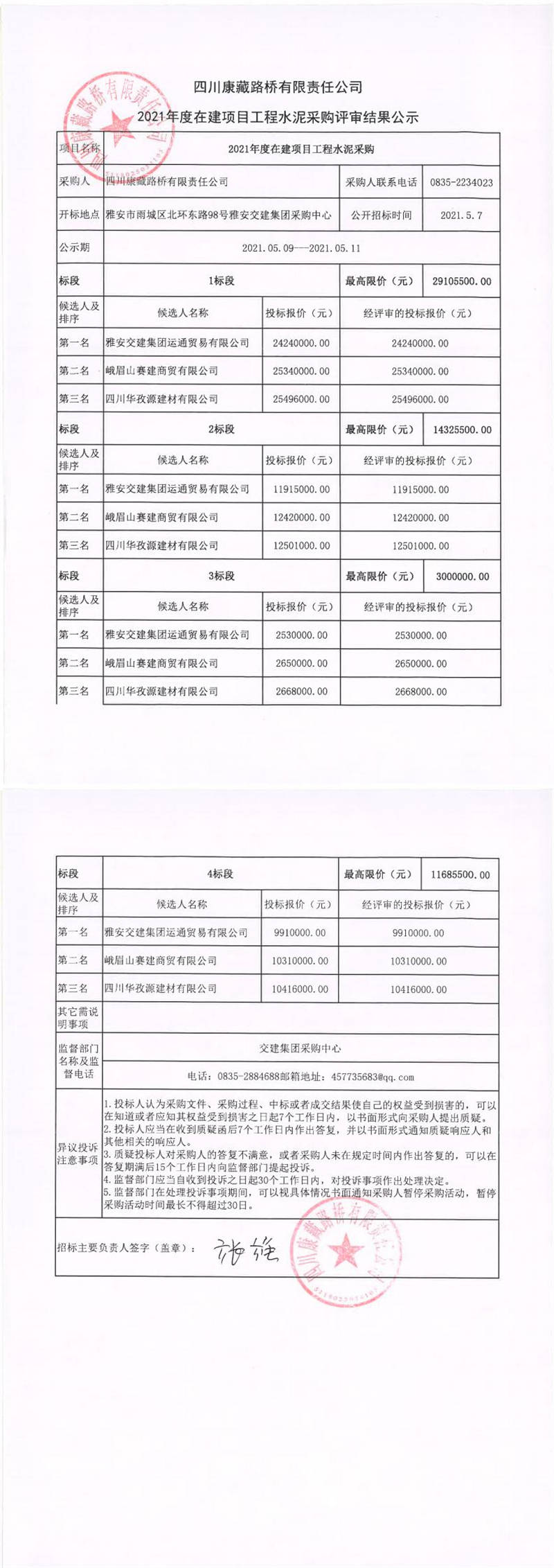 四川康藏路橋有限責(zé)任公司2021年度在建項目工程水泥采購評審結(jié)果公示