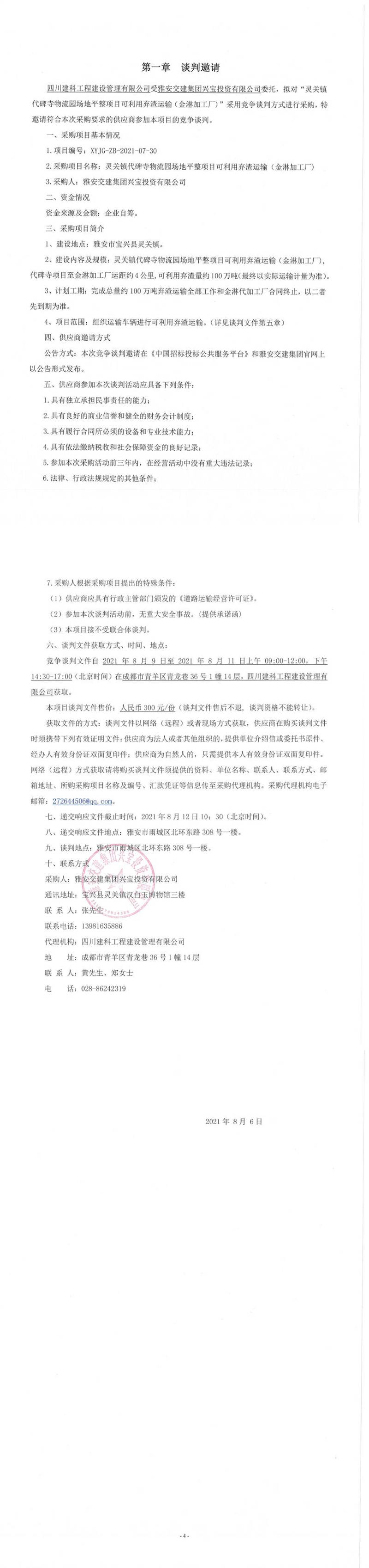 雅安交建集團(tuán)興寶投資有限公司靈關(guān)鎮(zhèn)代碑寺物流園場地平整項目可利用棄渣運(yùn)輸(金淋加工廠)競爭談判公告