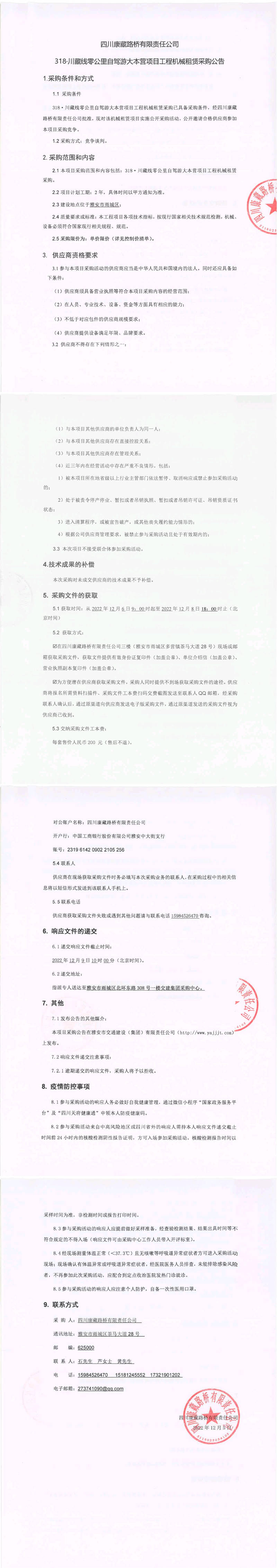 四川康藏路橋有限責(zé)任公司318.川藏線零公里自駕大本營(yíng)項(xiàng)目工程機(jī)械租賃采購公告