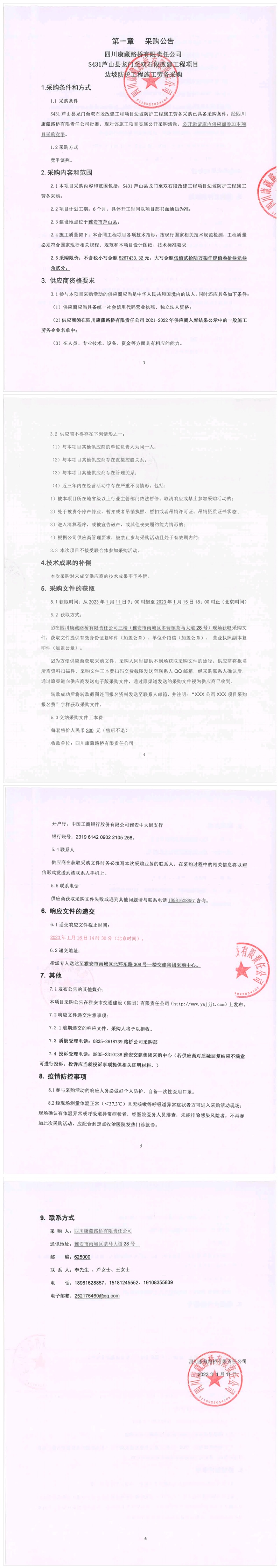 四川康藏路橋有限責(zé)任公司S431蘆山縣龍門至雙石段改建工程項目邊坡防護工程施工勞務(wù)采購競爭談判結(jié)果公示