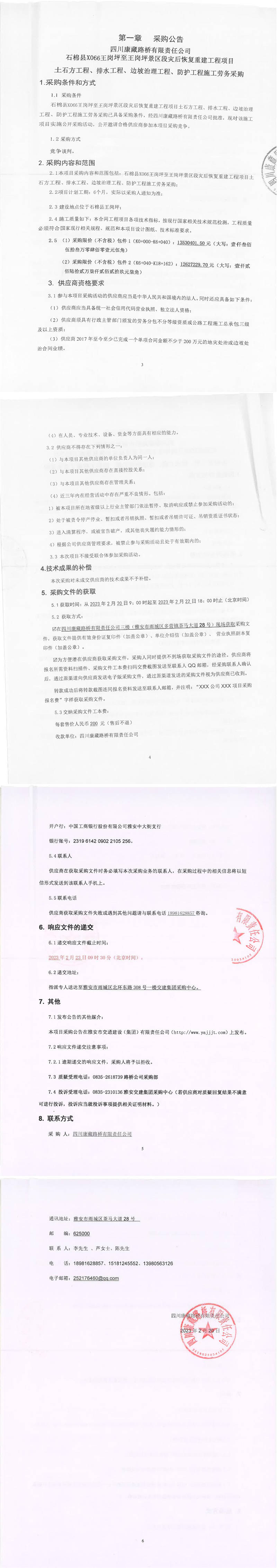 四川康藏路橋有限責(zé)任公司石棉縣X066王崗坪至王崗坪景區(qū)段災(zāi)后恢復(fù)重建工程項(xiàng)目土石方工程、排水工程、邊坡治理工程、防護(hù)工程施工勞務(wù)采購(gòu)公告