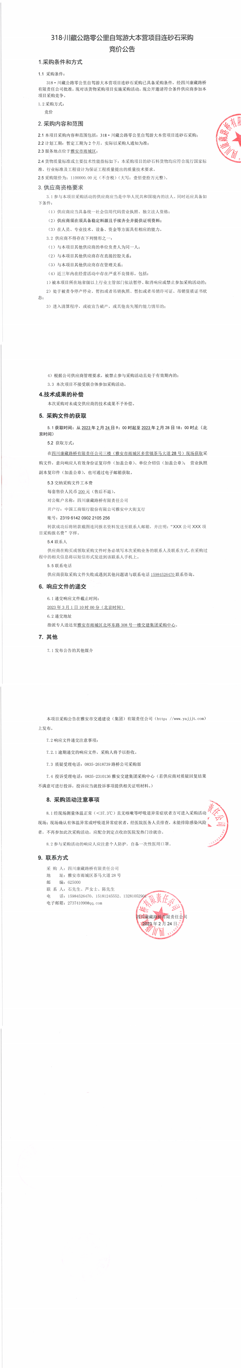四川康藏路橋有限責(zé)任公司318·川藏公路零公里自駕游大本營(yíng)項(xiàng)目連砂石采購(gòu)競(jìng)價(jià)公告