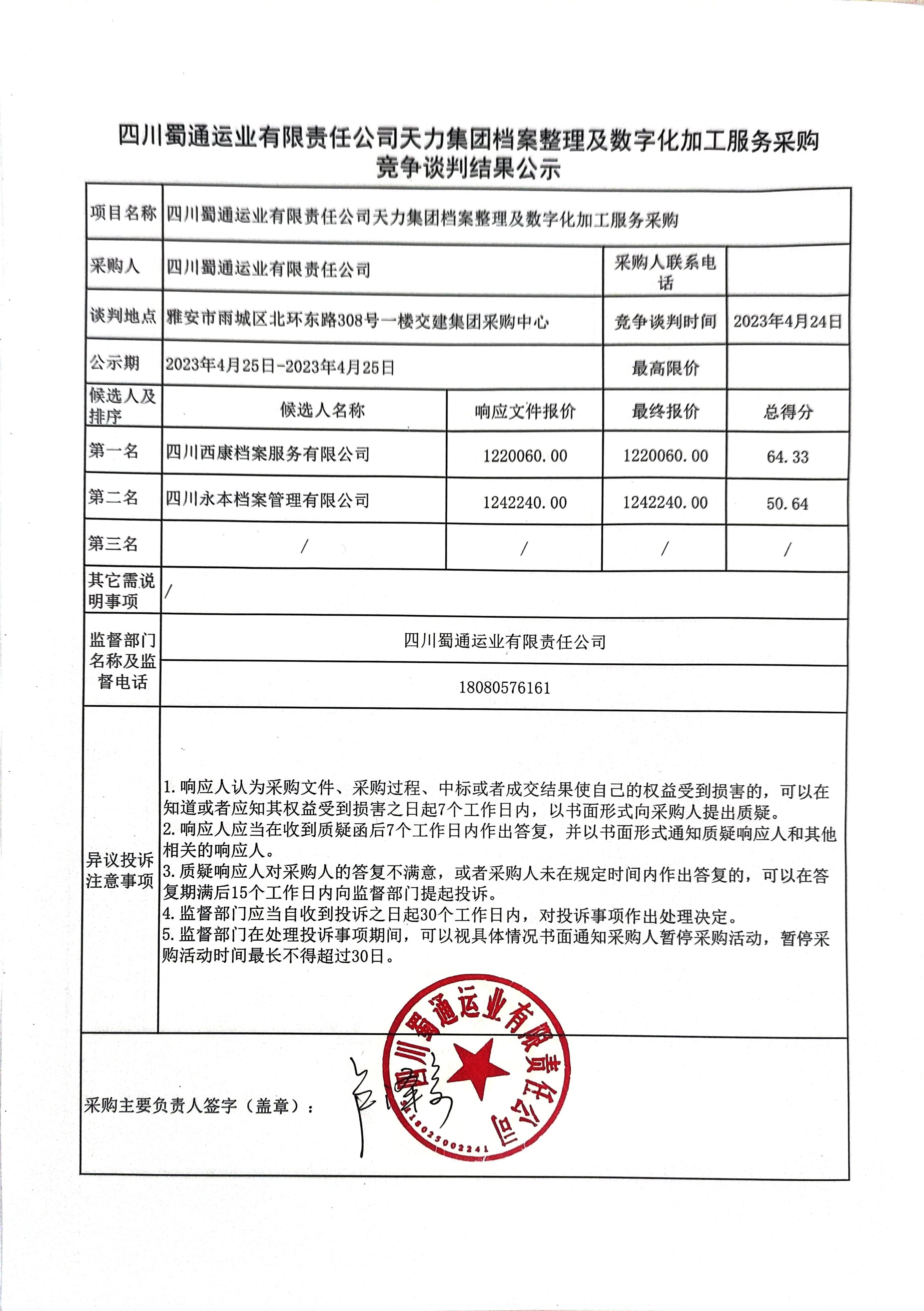 四川蜀通運(yùn)業(yè)有限責(zé)任公司天力集團(tuán)檔案整理及數(shù)字化加工服務(wù)采購(gòu)競(jìng)爭(zhēng)談判結(jié)果公示