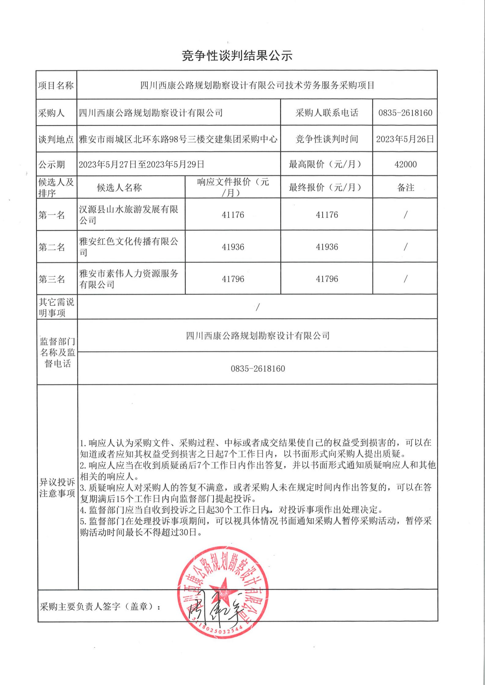 四川西康公路規(guī)劃勘察設(shè)計(jì)有限公司技術(shù)勞務(wù)服務(wù)采購(gòu)結(jié)果公示