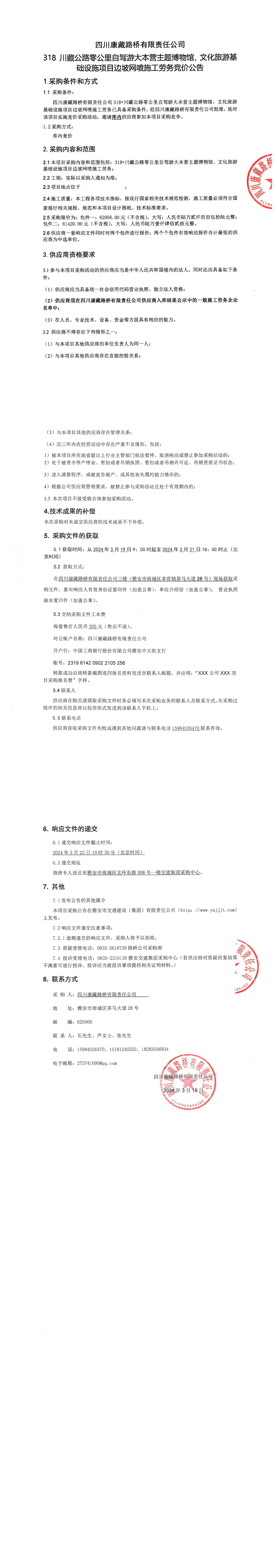 四川康藏路橋有限責任公司318•川藏公路零公里自駕游大本營主題博物館、文化旅游基礎(chǔ)設(shè)施項目邊坡網(wǎng)噴施工勞務采購公告