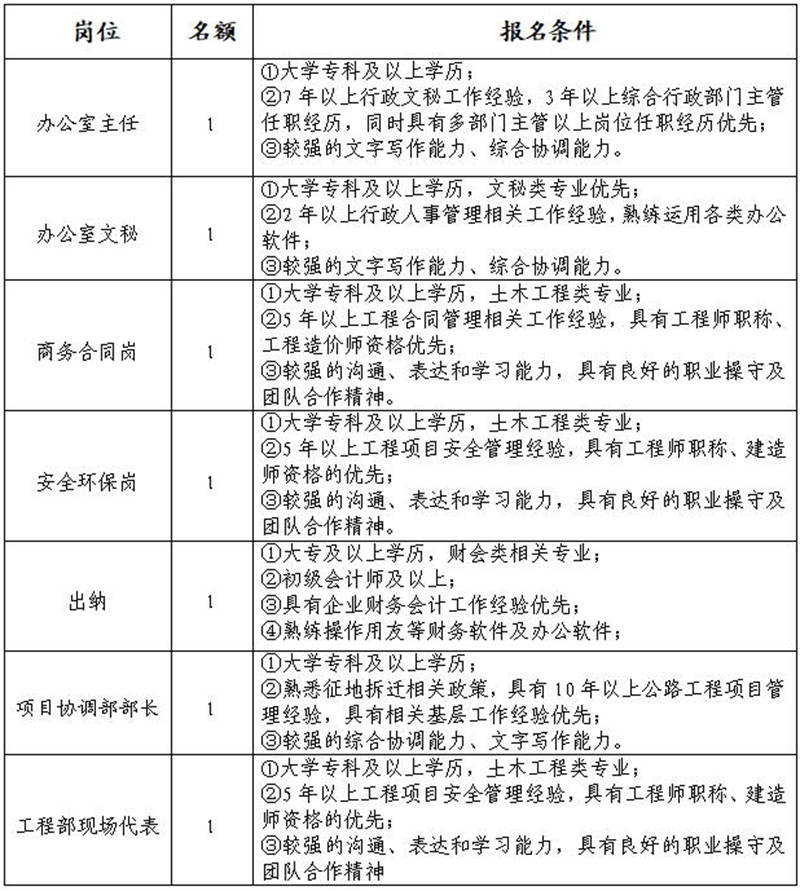 公告發(fā)布在雅安市交通建設(shè)(集團)有限責(zé)任公司網(wǎng)站,自發(fā)布之日起即可報名,截止時間為2019年 1 月6日18:00。