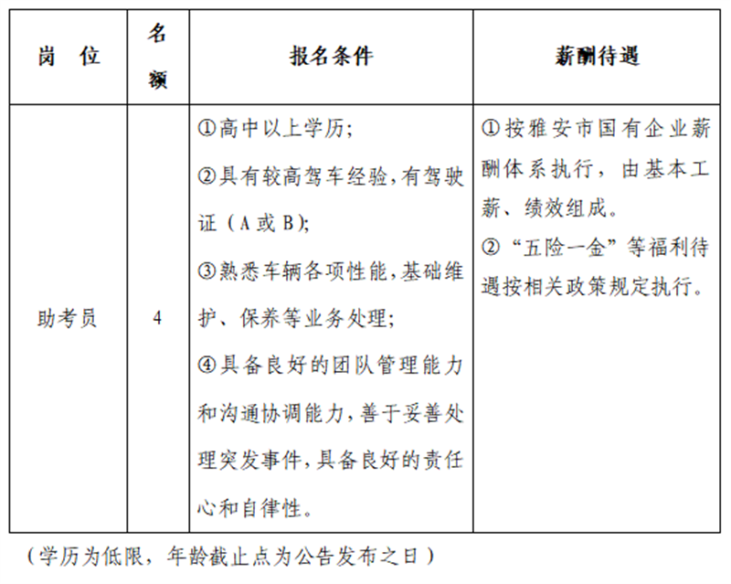 雅安交建集團(tuán)平順檢測有限公司主要經(jīng)營項目為機動車安全技術(shù)檢驗、機動車駕駛員培訓(xùn)(科目二、三適應(yīng)性訓(xùn)練)、機動車環(huán)保定期檢驗、汽車綜合性能檢測等相關(guān)業(yè)務(wù)。因業(yè)務(wù)發(fā)展需要面向社會招聘人員,特公告如下:
