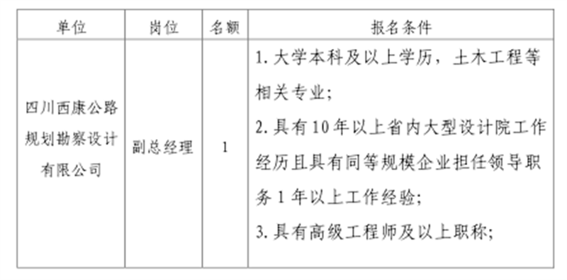 1.報名。公告發(fā)布在雅安市交通建設(集團)有限責任公司門戶網(wǎng)站,自發(fā)布之日起即可報名,截止時間為2019年7月5日18:00。網(wǎng)上報名,報名者須如實填寫《報名登記表》。 網(wǎng)上報名,在規(guī)定時間內(nèi)將填寫好的《報名登記表》、本人有效身份證、畢業(yè)證、職稱、執(zhí)業(yè)資格及工作業(yè)績等證明材料以電子文檔的形式發(fā)送至郵箱2018523008@qq.com(姓名+應聘公司名稱+應聘工作崗位)。咨詢電話:0835-5897859。