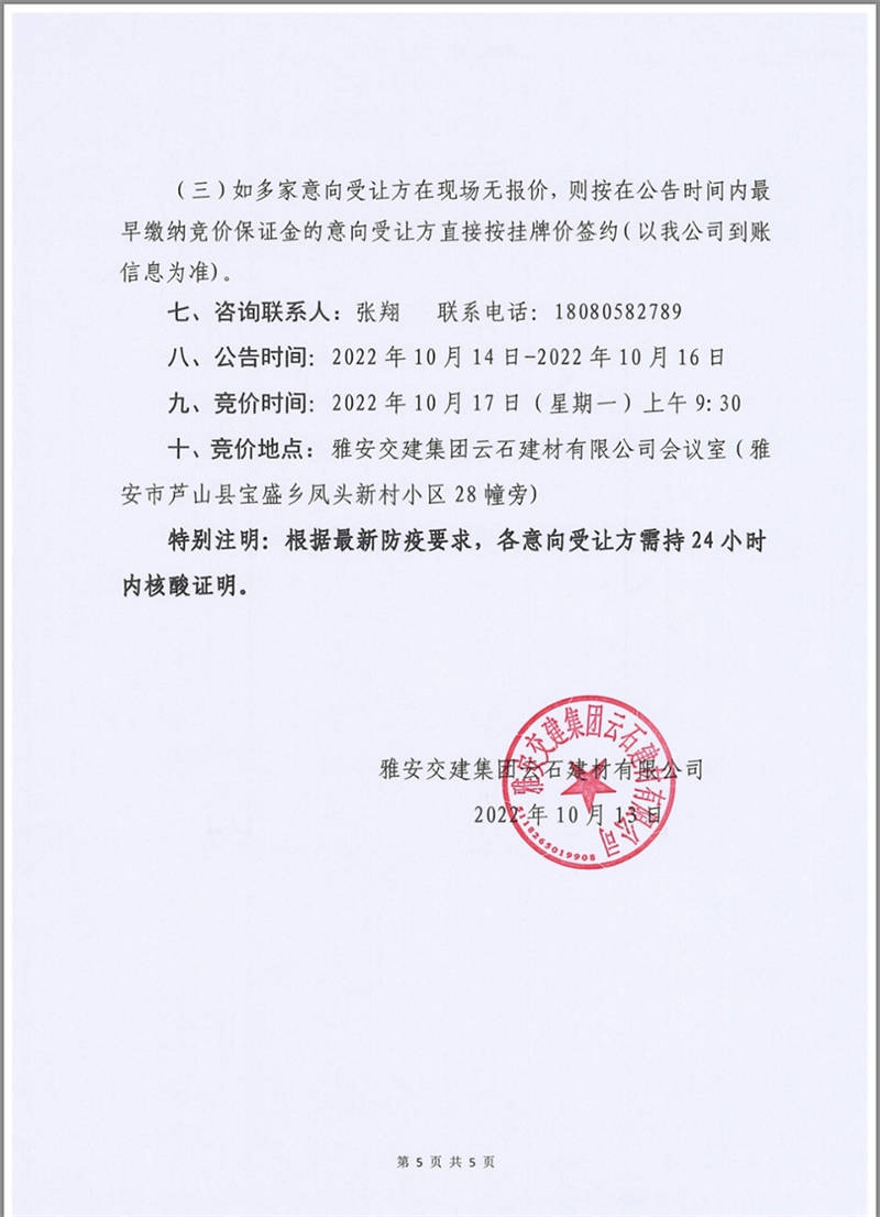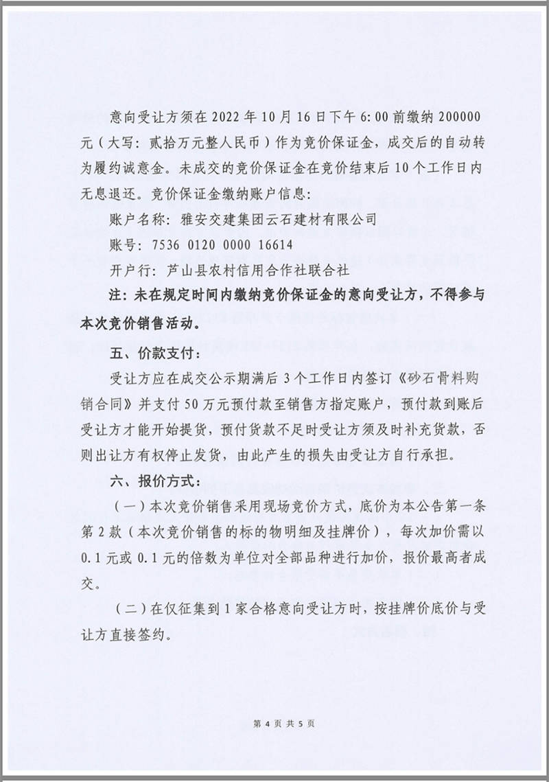 雅安交建集團(tuán)云石建材公司成品料競價銷售公告10.13