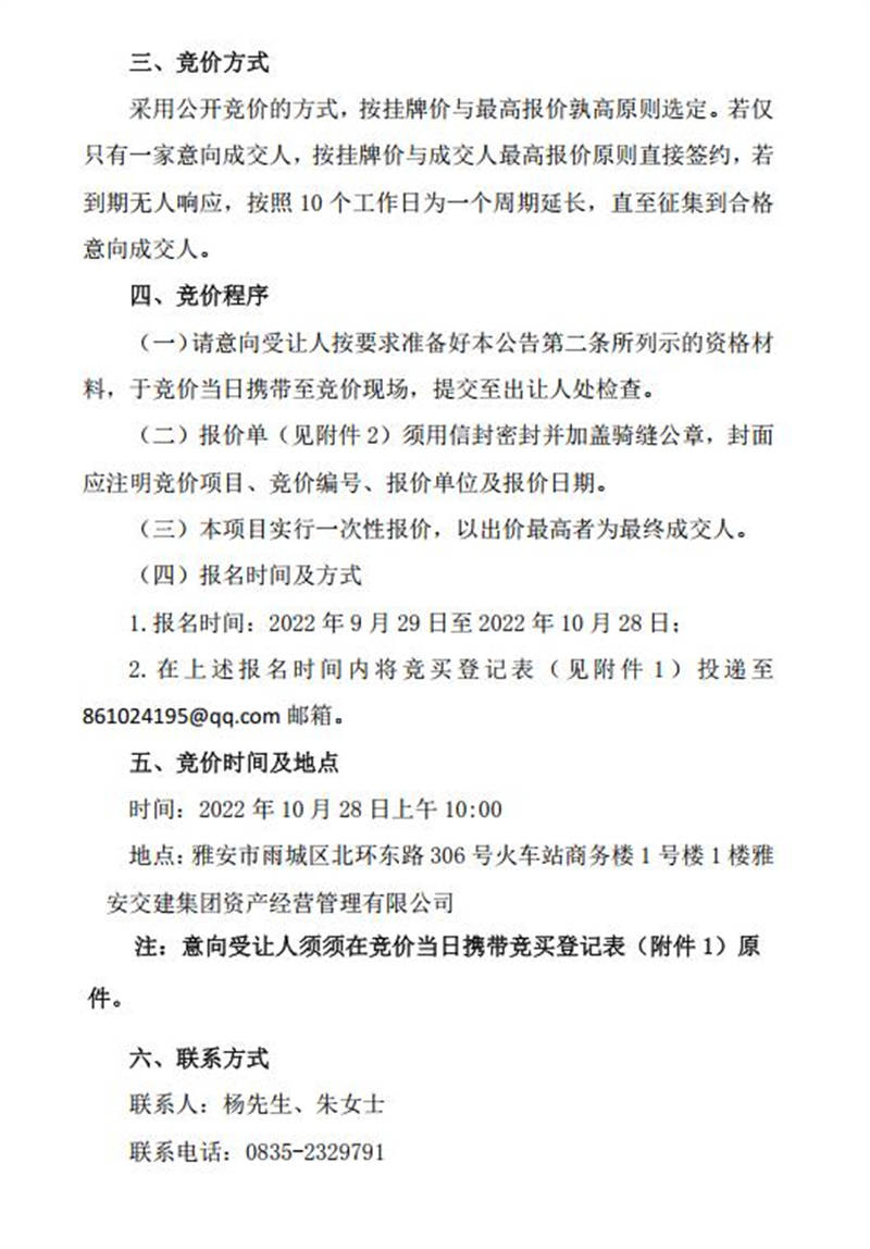 雅安交建無(wú)水港公司關(guān)于閑置資產(chǎn)公開(kāi)招租的公告
