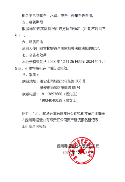四川蜀通運(yùn)業(yè)有限責(zé)任公司關(guān)于部分商鋪、辦公室對(duì)外招租的公告附件:
