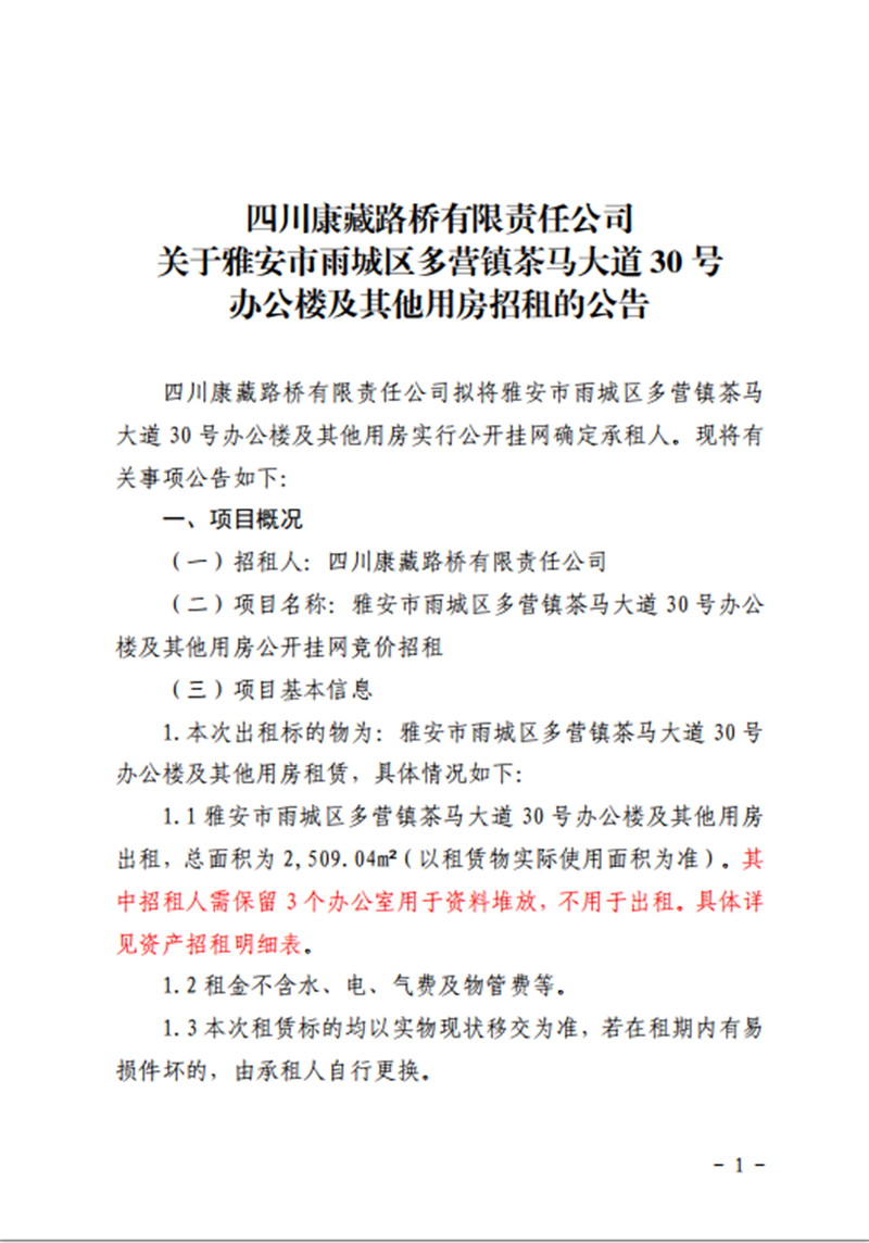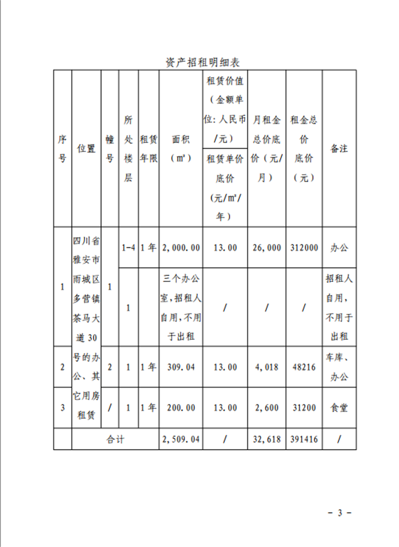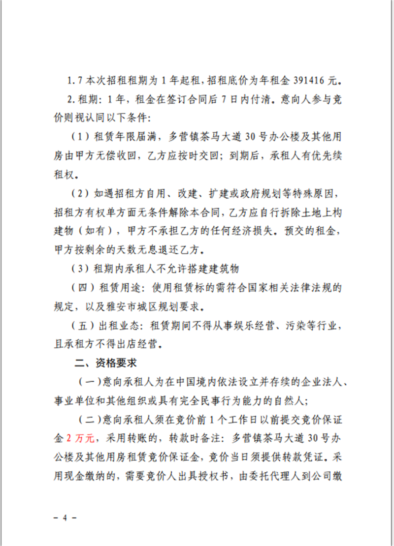 關(guān)于雅安市雨城區(qū)多營鎮(zhèn)茶馬大道30號辦公樓及其他用房招租的公告附件1-4