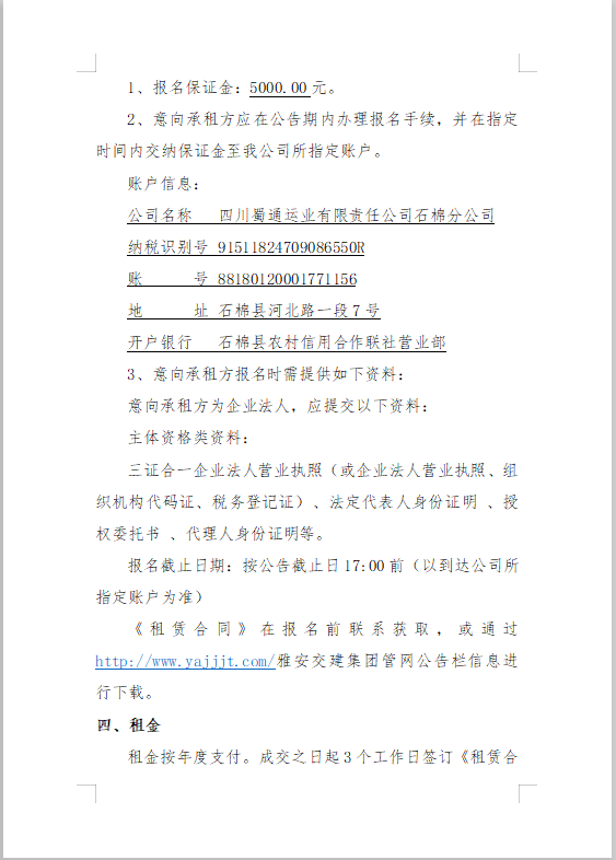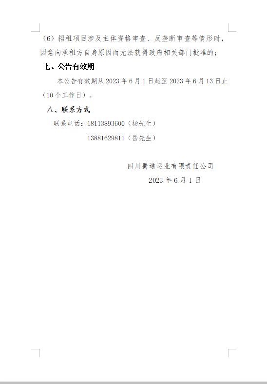 蜀通運業(yè)有限責任公司關(guān)于閑置資產(chǎn)公開招租的公告