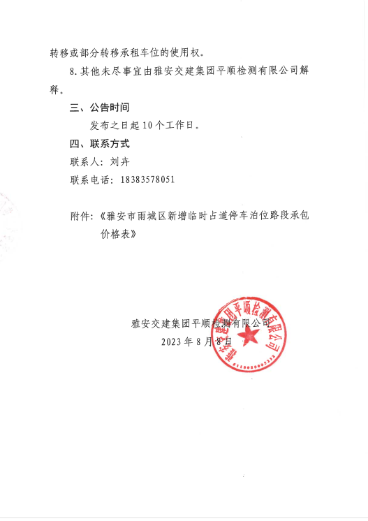 雅安交建集團(tuán)平順檢測(cè)有限公司臨時(shí)占道停車泊位臨時(shí)承包招租的公告