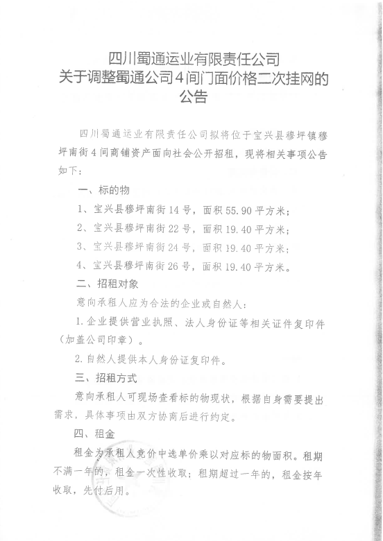 ËÄ´¨Êñͨß\˜I(y¨¨)ÓÐÏÞØŸÈι«Ë¾êP(gu¨¡n)ÓÚÕ{(di¨¤o)ÕûÊñͨ¹«Ë¾4égéTÃæƒr¸ñ¶þ´Î’ì¾W(w¨£ng)µÄ¹«¸æ¸½¼þ