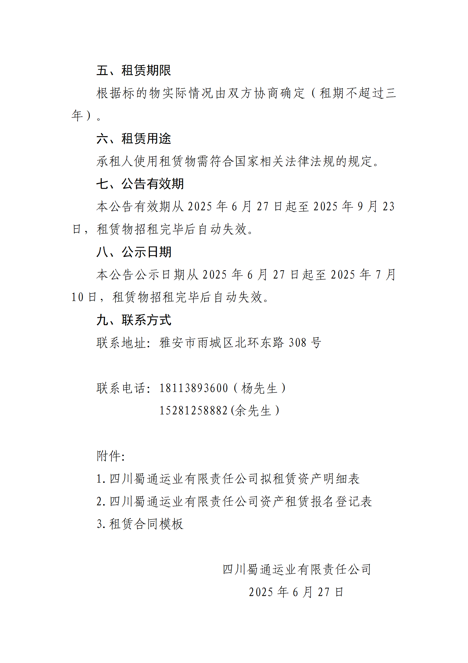 四川蜀通運(yùn)業(yè)有限責(zé)任公司 關(guān)于康藏路61號(hào)附1號(hào)門面、康藏路85號(hào)場(chǎng)地兩處資產(chǎn)進(jìn)行掛網(wǎng)招租的公告