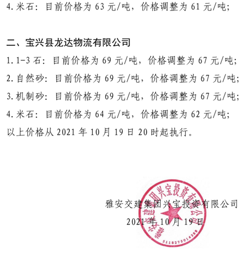 ÑŰ²½»½¨¼¯ˆF(tu¨¢n)ÅdŒš¹«Ë¾êP(gu¨¡n)ÓÚÕ{(di¨¤o)Õû³ÉÆ·ÁÏäNÊÛƒr¸ñµÄ֪ͨ£¨2021.10.20£©