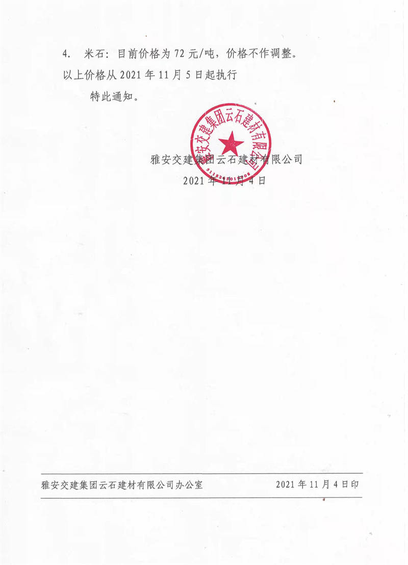 ÑŰ²½»½¨¼¯ˆF(tu¨¢n)ÔÆÊ¯¹«Ë¾êP(gu¨¡n)ÓÚÕ{(di¨¤o)Õû³ÉÆ·ÁÏäNÊÛƒr(ji¨¤)¸ñµÄ֪ͨ£¨2021.11.4£©