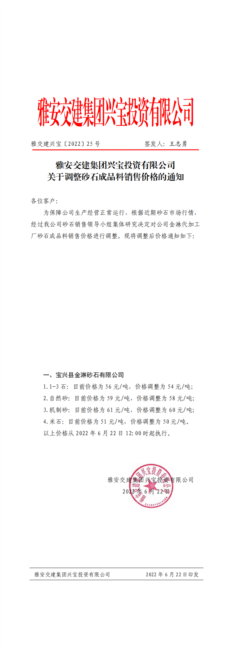 ÑŰ²½»½¨¼¯ˆF(tu¨¢n)ÅdŒšÍ¶ÙYÓÐÏÞ¹«Ë¾ êP(gu¨¡n)ÓÚÕ{(di¨¤o)Õûɰʯ³ÉÆ·ÁÏäNÊÛƒr(ji¨¤)¸ñµÄ֪ͨ£¨2022-6-22£©