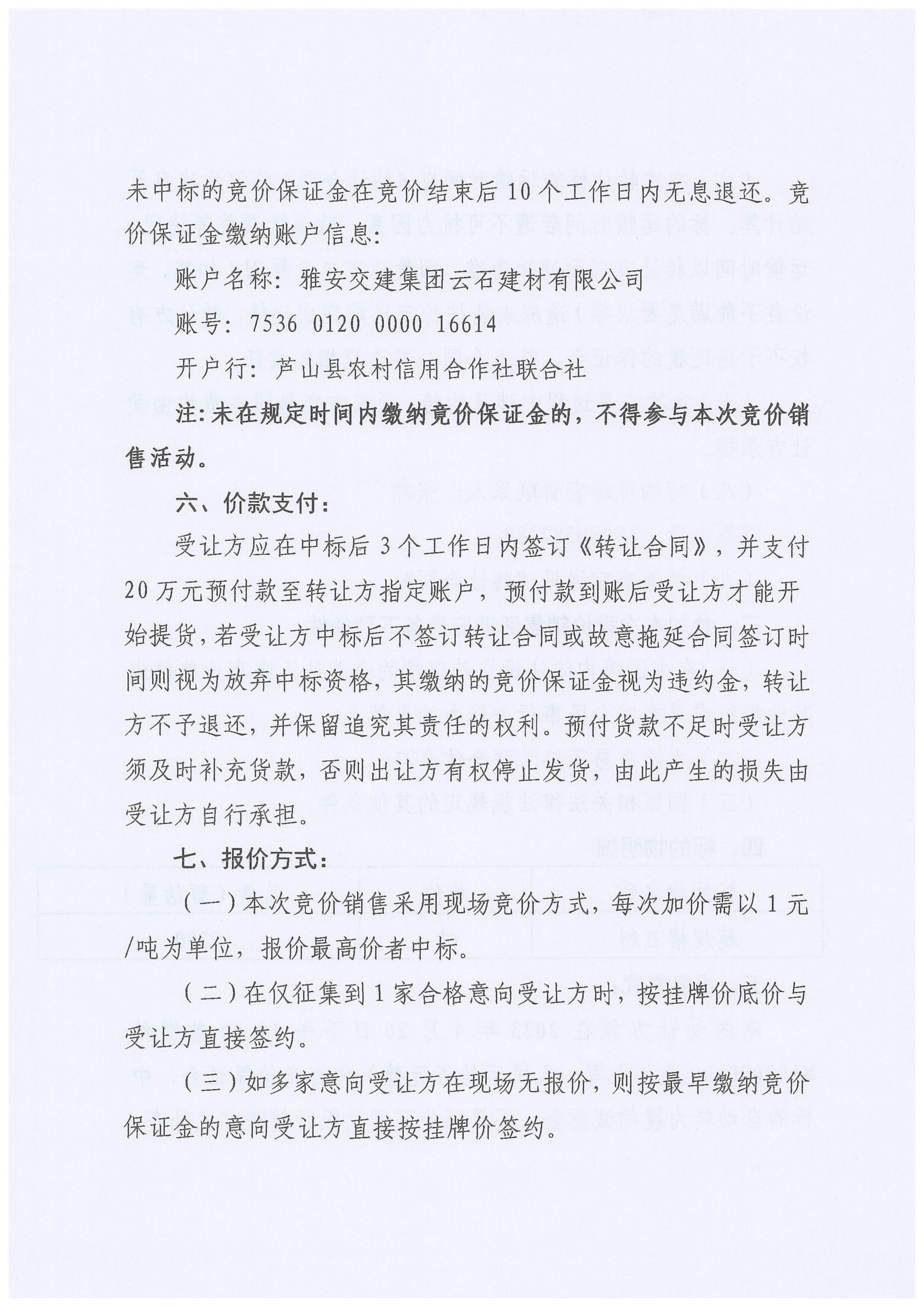 雅安交建集團(tuán)興寶投資有限公司靈關(guān)鎮(zhèn)代碑寺土地整理項(xiàng)目5萬(wàn)噸可利用棄渣競(jìng)價(jià)銷售公告(2023.4.20)