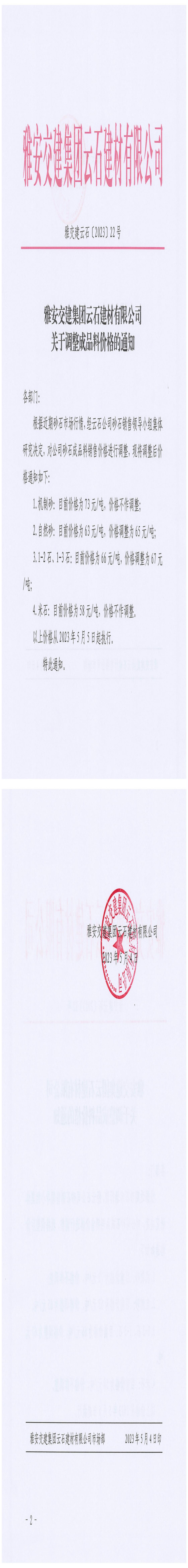ÑŰ²½»½¨¼¯ˆFÔÆÊ¯½¨²ÄÓÐÏÞ¹«Ë¾³¬ÒŽ(gu¨©)¸ñʯÁϸ‚ƒräNÊÛ¹«¸æµÚ2´Î£¨2023.5.5£©